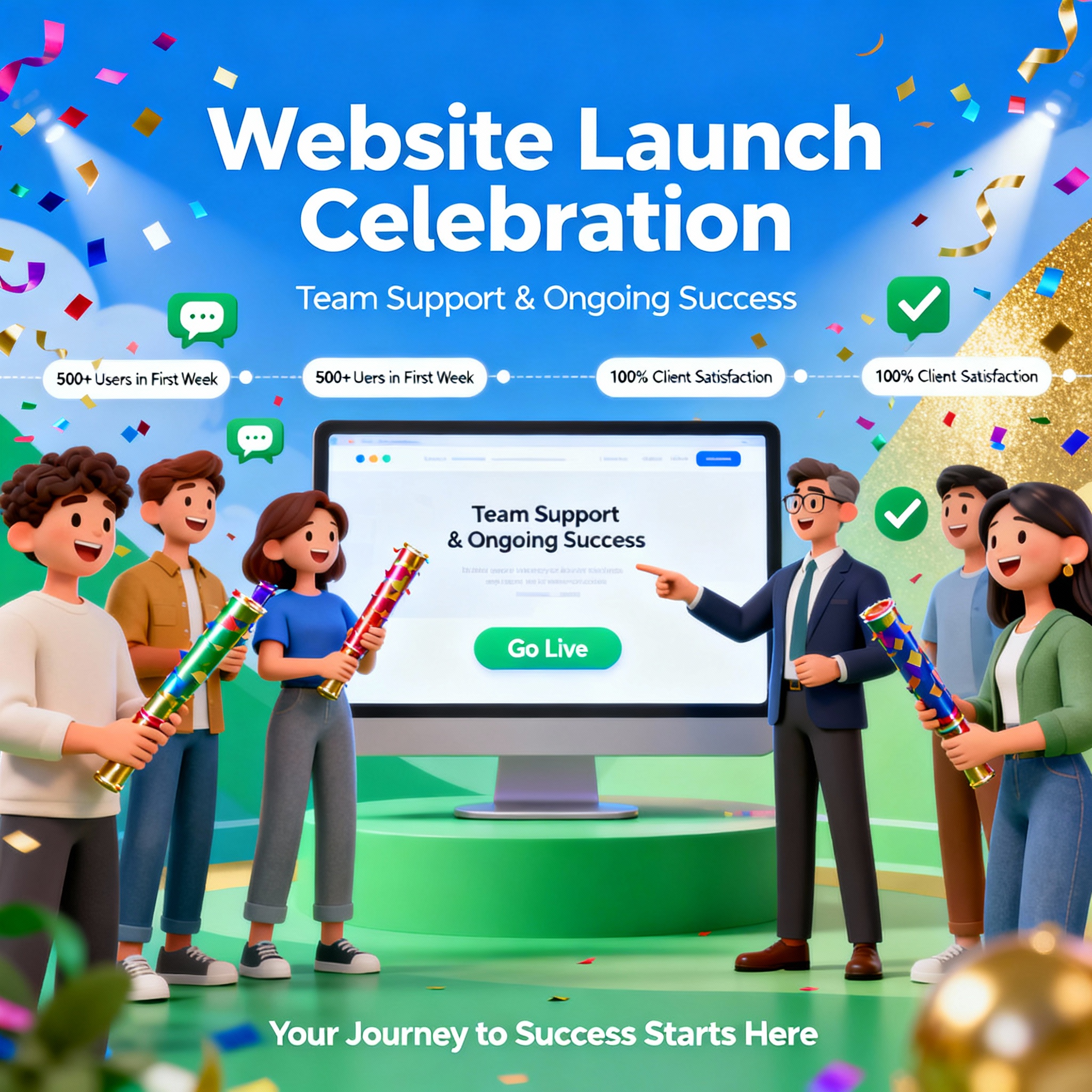 It's showtime! After thorough testing and your thumbs-up, we launch your website to the world. But we don't just hand you the keys and disappear. We'll show you the ropes, answer your questions, and be there when you need us. Your success story is just beginning, and we're honored to be part of it.