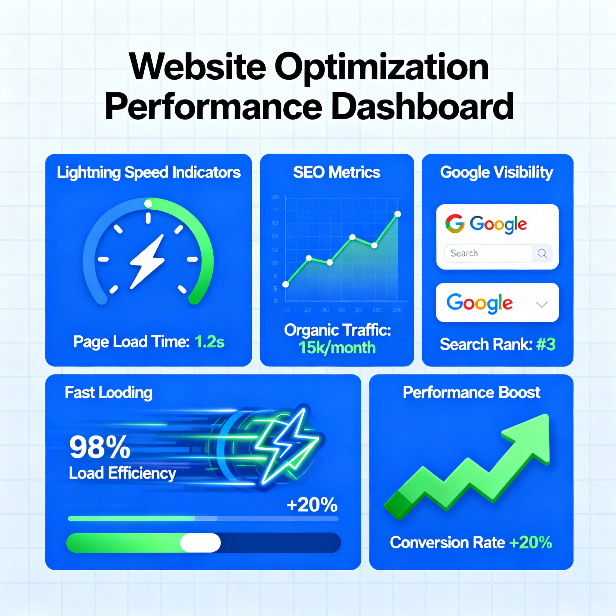 A gorgeous website that loads like molasses? No thanks. We make sure your site is lightning-fast and Google-friendly. That means more people find you, pages load in a blink, and your visitors stick around instead of bouncing to competitors. Speed and visibility—that's how you win online.